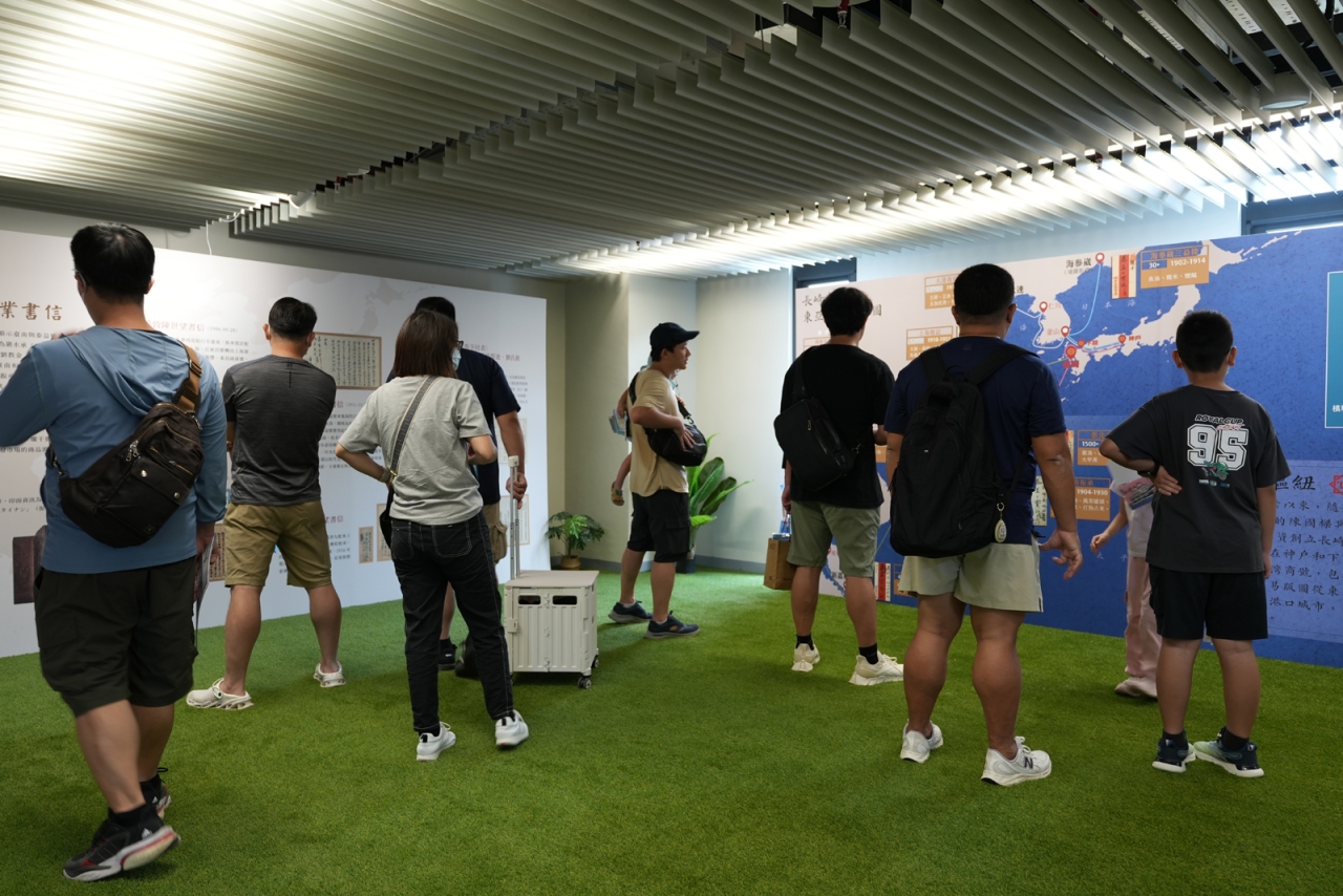 民眾參觀長崎泰益號東亞貿易網絡圖,以及臺南與南洋商業書信的情景。