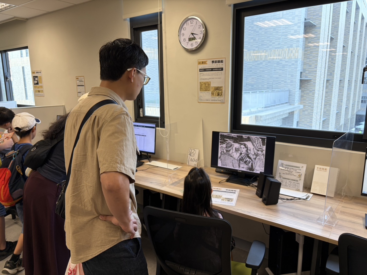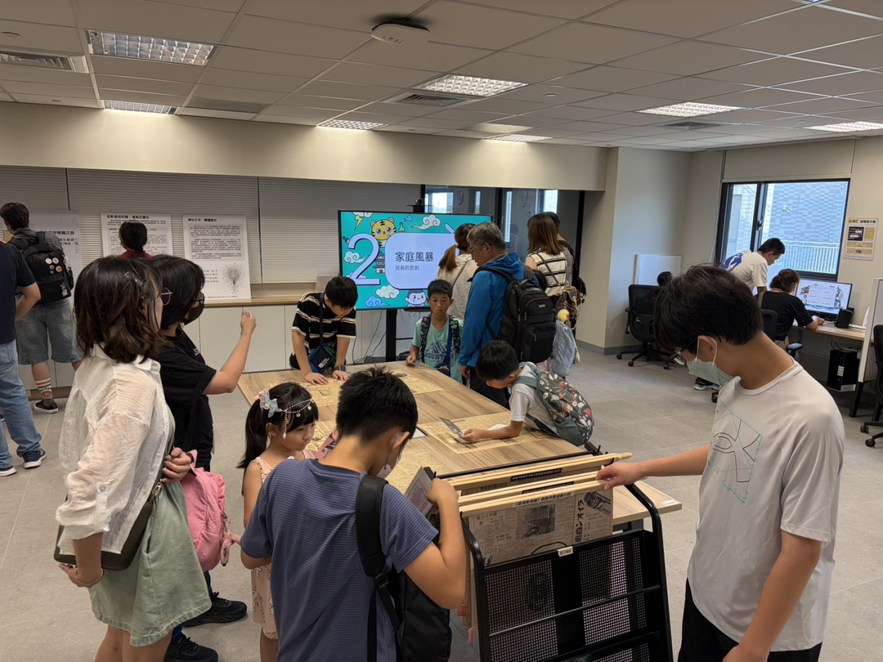 民眾在工作人員的引導下,運用手機解譯戰前報紙史料,或專注觀賞AI製作的小說動畫。